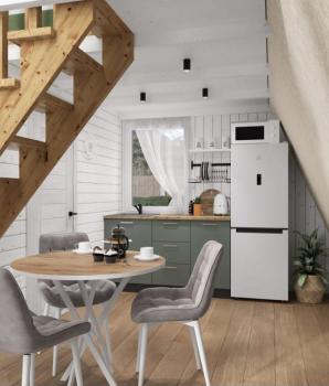 В каждом домике укомплектованная современная кухонная зона - холодильник, чайник, микроволновка.