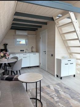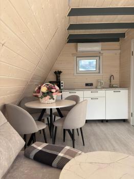 Круглогодичные, уютные, четырёхместные домики с теплым полом и современным ремонтом.