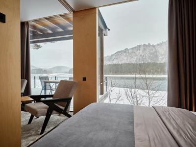 - Идеальное расположение. Находится в уединенном месте на берегу реки в окружении леса и гор. В 15 минутах от горнолыжного курорта Манжерок. В 27 километрах от аэропорта Горно-Алтайска.