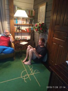 Телевизор тоже находится в общем зале. Там же есть библиотека, гитара, настольные игры ( шахматы, шашки, нарды, пазлы и т.д.).