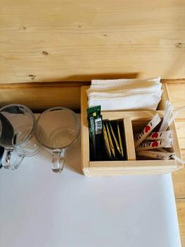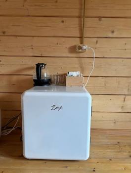 - В номерах имеются чайник и холодильник, есть чай, кофе, сахар.