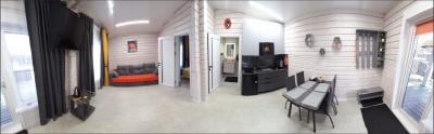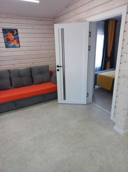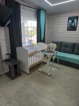 Домики двухкомнатные, одна комната это гостиная-кухня, вторая спальня.