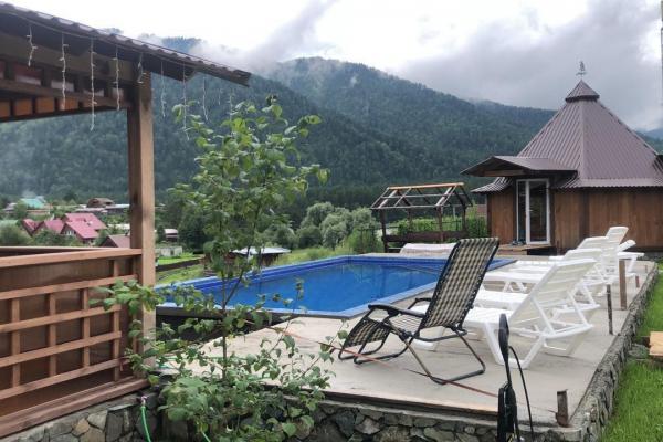 До реки Катунь 5 минут пешком, из беседки и бассейна открывается вид на слияние рек Узнезя и Катунь.
