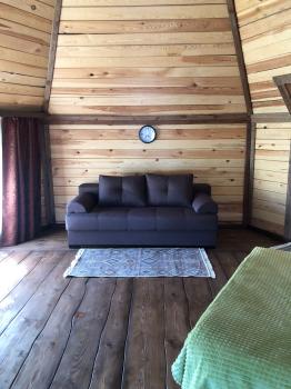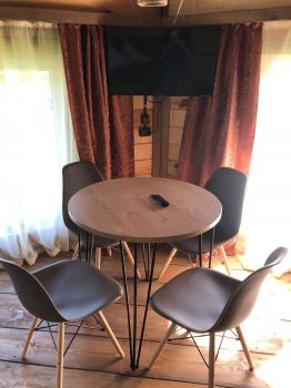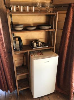 Круглогодично. Тёплый пол, отдельный санузел в номере (душ, туалет), фен, полотенца, посуда, холодильник, стол, стул, телевизор, кресло-кровать, полочки, романтическая подсветка, панорамные окна, терраса (стол и стулья).