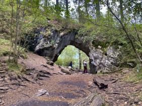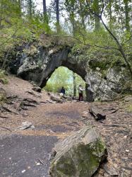 После "Ноздрей дракона" тропа приводит к "Арке желаний". Это Талдинская карстовая арка, имеющая статус памятника природы республиканского значения! Находится она на высоте 80 метров над уровнем реки Катунь. Говорят, что желания, загаданные под аркой, сбываются )).