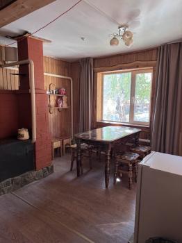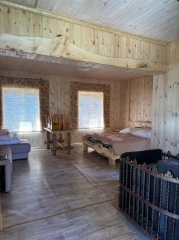 Первый этаж 7 мест 9500 р. 3 комнаты с общей кухней и печкой. В двух комнатах по 2 односпальные кровати. В третьей комнате одна двуспальная и одна односпальная кровати. Во всех комнатах индивидуальные тумбочки. А также на первом этаже имеется
