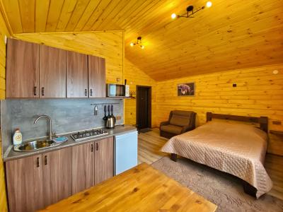 Номер № 3 двуспальная кровать, и диван книжка раскладывается шкаф, стол, 2 стула, телевизор, Санузел, душ, фен. Общая кухня с номеров 4.