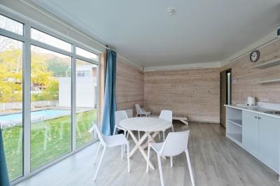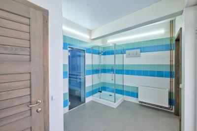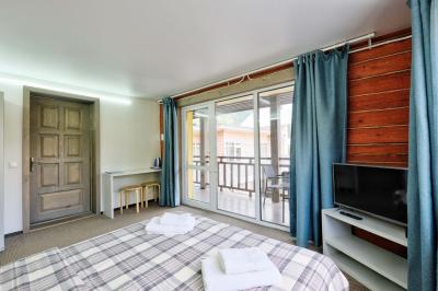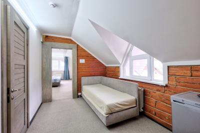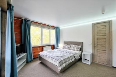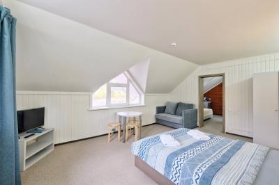 - Двухкомнатный Семейный Комфорт большой как квартира, 40 м кв. также со всеми удобствами, одна комната проходная, для размещения гостей есть большая кровать, еще кровать и диванчик шириной 120 см.