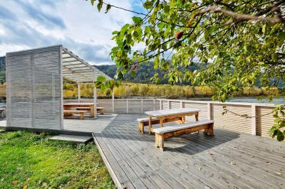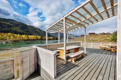 С территории и с беседок открывается великолепный вид на реку и горы.