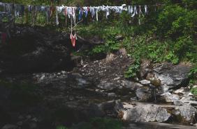 На входе в ущелье надо заплатить на 2025 г. 200 руб. Затем вы начинаете подъем по живописной тропе, рядом с которой журчит небольшая веселая речка. Эта речка немного выше и образует водопад. С верхней точки тропы можно, оглянувшись назад, увидеть Чемальский тракт. На тропе есть беседки, туалет.