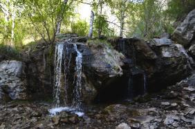 В тени березы, перед водопадом, оборудовано место для отдыха: стол с широкими скамьями. Здесь можно перекусить, попить воды, набранной из родника.