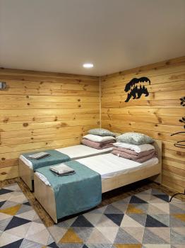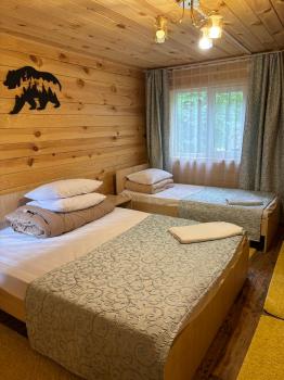 Отдельно стоящий корпус. В корпусе пять номеров по 4 места в номере.