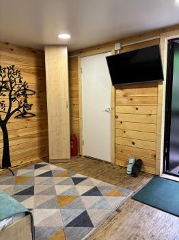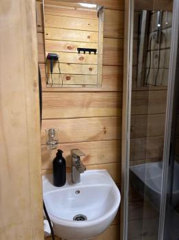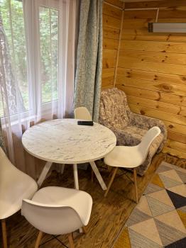 I этаж: 2-спальная кровать, кресло-кровать, стол, стулья, пенал для белья, Wi-Fi, TV, тумбочка. Мини кухня с посудой, холодильник, микроволновка, чайник. Инфракрасный обогреватель. Туалетная комната: WC, раковина, душевая кабина, фен.