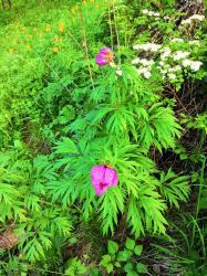 - Пион уклоняющийся (Марьин корень) вызывает большой интерес у селекционеров и озеленителей. Цветок очень красивый и зацветает на месяц-полтора раньше своих культурных собратьев.