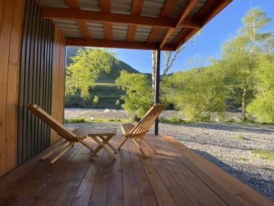 Домик с панорамным окном у реки Урсул в Горном Алтае