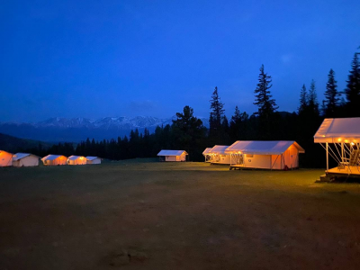Ночёвка в глемпинге или национальных юртах с удобствами. На транспорте 0 км, пешком по запросу.