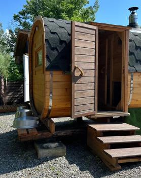 - ️Кедровая баня-бочка — особая атмосфера из сибирского кедра,
