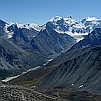 Вид с перевала Каратюрек на Белуху, ущелье Ярлу и долину реки Аккем. Съемка: Август 2011