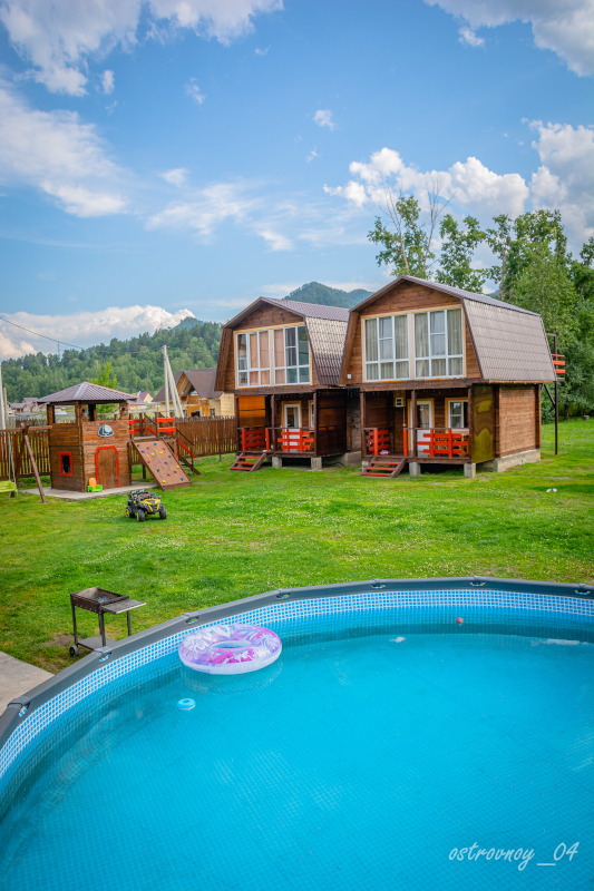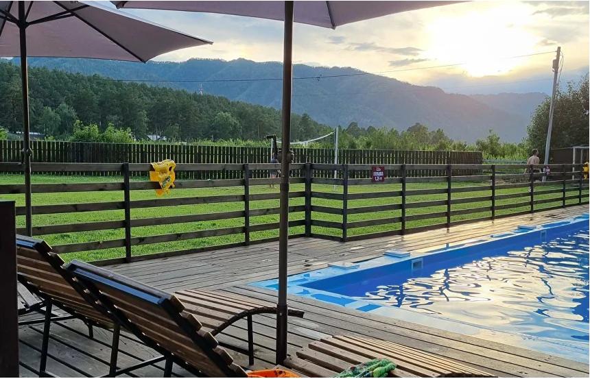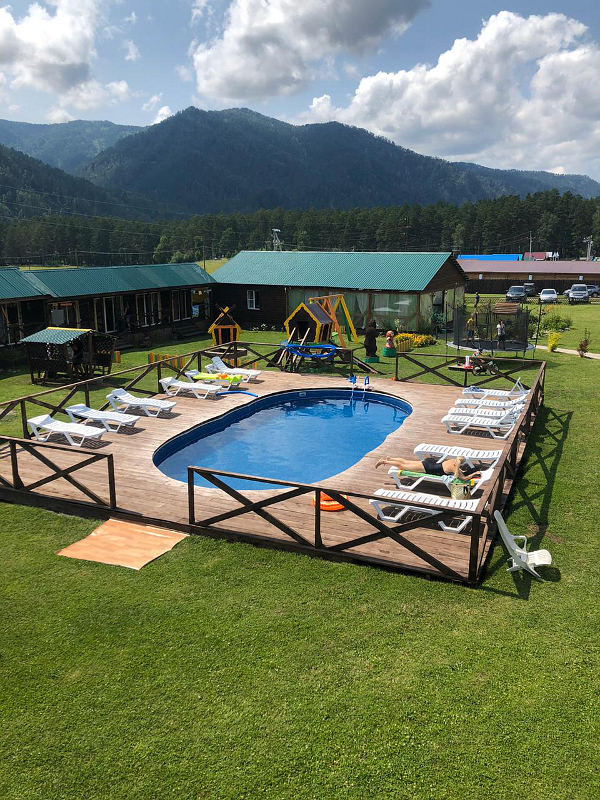 Шале и бассейн с подогревом в Манжерок у реки Катунь на 1 линии. Питание шведский стол. Благоустроенные номера. Баня, спортивная и детская площадки, настольный теннис, бильярд, конные прогулки, сплавы, экскурсии. Читать еще »