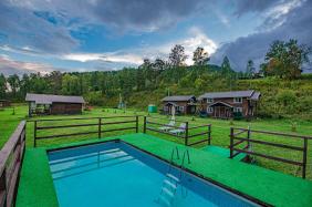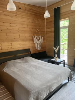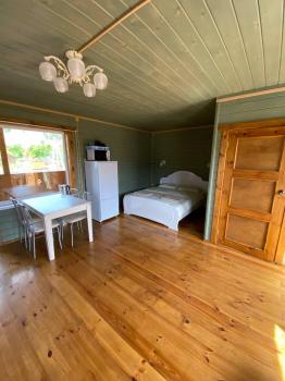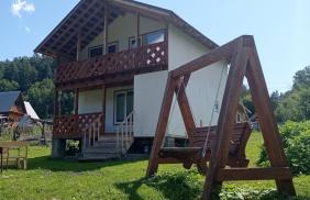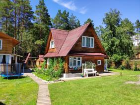Два благоустроенных 2-х местных домика с панорамными окнами (круглый год). 2-3-х местные номера в двухэтажном доме. Ухоженная территория, большая баня, беседки. На солнечной полянке - бассейн, шезлонги Читать еще »