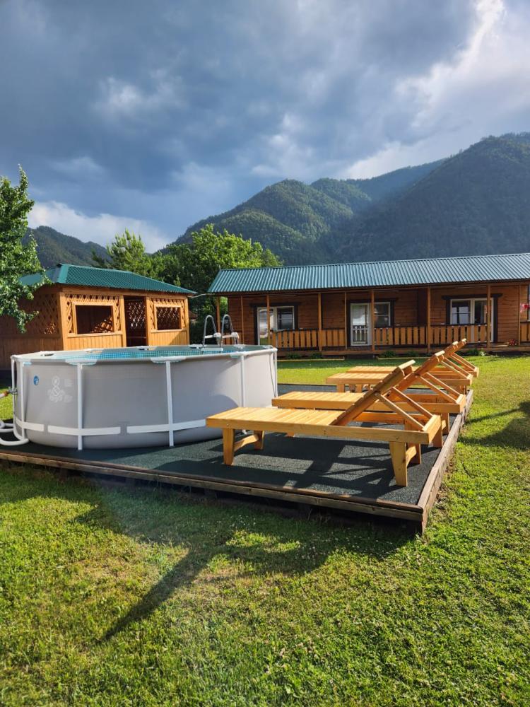 Домик у бассейна и 2 уютных коттеджа у реки Катунь в с. Соузга. Два бассейна для детей и взрослых, сауна, беседка-кухня. Рядом канатная дорога Манжерок, озеро Ая, аттракционы. Можно встать с палаткой. Читать еще »