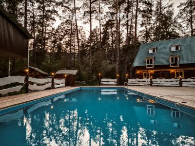 Бассейн с подогревом. 6 кедровых домиков с душем и 2х комнатный номер в лесу. Баня с бассейном. Место для костра с лавочками. Летняя кухня. Читать еще »