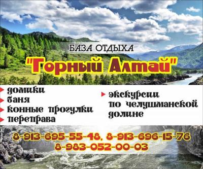 На берегу Катуни. Благоустроенные номера: 2-3-х местные; этаж 6-ти местный. Аил 4-х местный. Детская, волейбольная площадка, теннисный стол, баня. Цена договорная! В 3-х километрах курорт Манжерок. Читать еще »