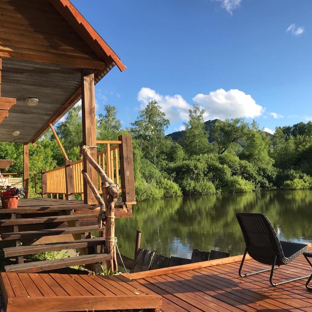 Три домика у собственного озера с видом на гору Церковка. Уединённый семейный отдых. Кухня, санузел и душ в каждом домике. Читать еще »