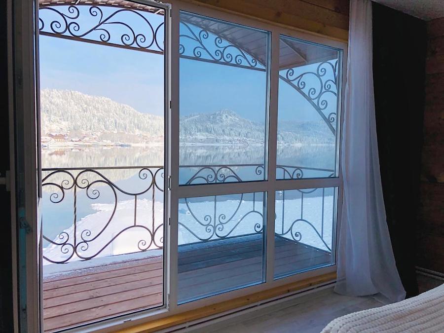 Коттедж с панорамными окнами 6-ти местный. Коттедж 4-х местный. Wi-Fi. Отдых на самом берегу Телецкого озера. Прогулки, экскурсии по озеру. Размещение круглогодичное. Свой катер
