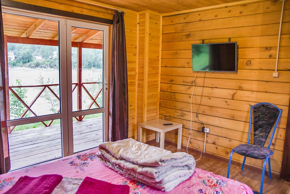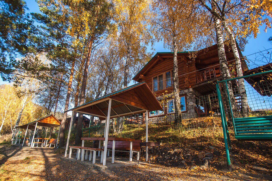 Коттеджи с камином у реки, бассейн с подогревом, банный чан. Современный комплекс в сосновом бору на берегу Катуни: SPA-центр, конференц-зал, ресторан. Размещение в основном корпусе и в коттеджах. Всего 36 номеров (стандарт, полулюкс, люкс, апартаменты), в двух номерах камин. Развлечения: бани, русский бильярд, зал с тренажерами.
