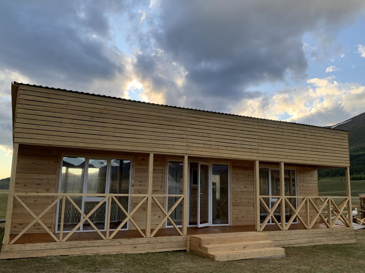 Новый благоустроенный домик у реки в Акташе с видом на горы, с панорамными окнами. Душ, туалет, кухня, фен в домике. Расположен уединенно. Можно приезжать с животными. Читать еще »