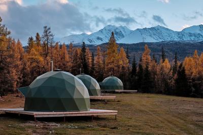3 купольных дома возле Акташа и Чибита на 778 км Чуйского тракта у слияния рек Чуя и Бельгебаш. Вид на величественные горы из панорамных окон. Экскурсии. Читать еще »
