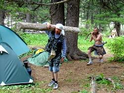 1. "Может здесь вход в сказочную страну Беловодье?" |  2. Лагерь поставили, а теперь - дискотека! |  3. "Духи реки, подогрейте воду!" |