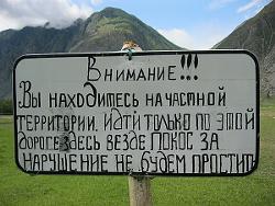 Принимаются фотографии со всем забавным, смешным, что вам встретилось на Алтае от объявлений на заборах, зарисовок природы, сюжетов с животными или птицами до веселых моментов из туристической жизни на Алтае. Как вам, например, название кафе на Чуйском тракте "Последний ужин", практически напротив которого располагается кладбище? :-) Или автомобильный знак "Конец зоны всех ограничений", на тропе к горе Белуха, вдоль озера Аккем, за базой спасателей? :-) Этот знак Туристка.Ру видела в начале сентября 2010 г. Видела, но, к сожалению, не сфотографировала ((. Наверняка вы более сообразительны в таких ситуациях! Вспоминайте и у вас найдется не один забавный сюжет для нашего конкурса! Работы конкурсантов можно будет посмотреть на форуме нашего сайта.