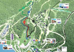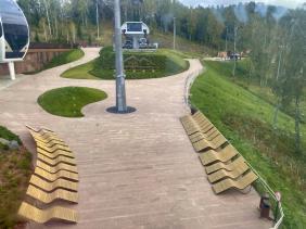 Тропа от верхней станции гондольного подъемника к кресельному подъемнику Восход называется "Шелковый путь". Она начинается перед лестницей к Золотой бабе.