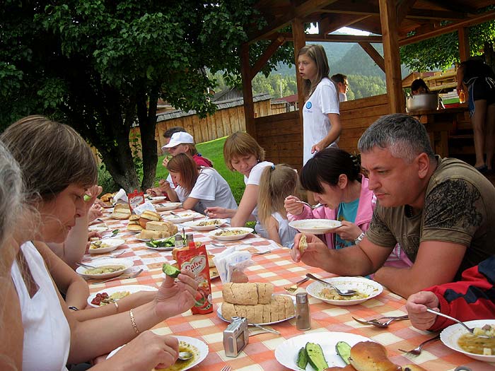 Участники семинара проживают в комфортабельном особняке. Сложенный из цельных сосновых брёвен, дом наполнен тонким древесным ароматом. С балконов уютных номеров перед гостями открывается живописная панорама. Красота и гармония первозданной природы, целебный горный воздух и чистая вода, пища из натуральных продуктов, наряду с занятиями, помогают быстро восполнить силы и обрести душевное равновесие, а также отдохнуть в свободное от занятий время!