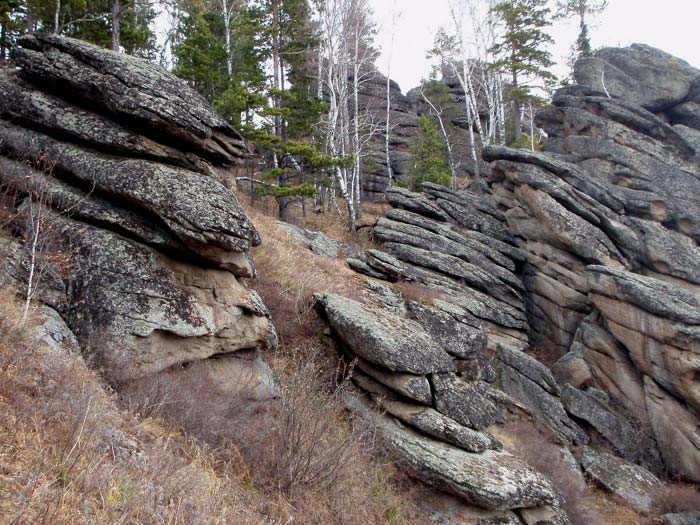 На южном склоне горы Круглой, около "Каменного водопада" можно долго сидеть на камушке и любоваться не только "водопадом", но и красивым видом на мягкие очертания гор, простирающихся до самого горизонта, "Таежную заимку" и реку Белокуриха. Среди скал "Каменного водопада" можно погулять, попробовать забраться на некоторые выступы, пофотографировать.