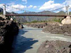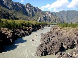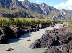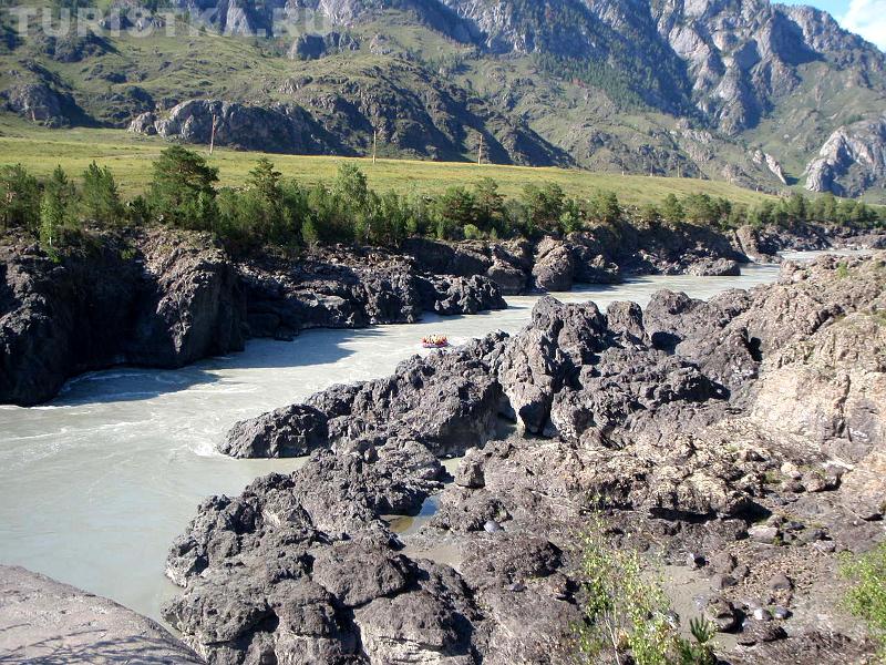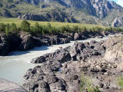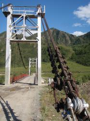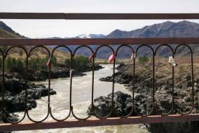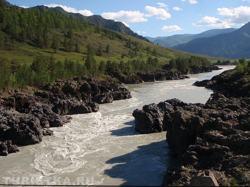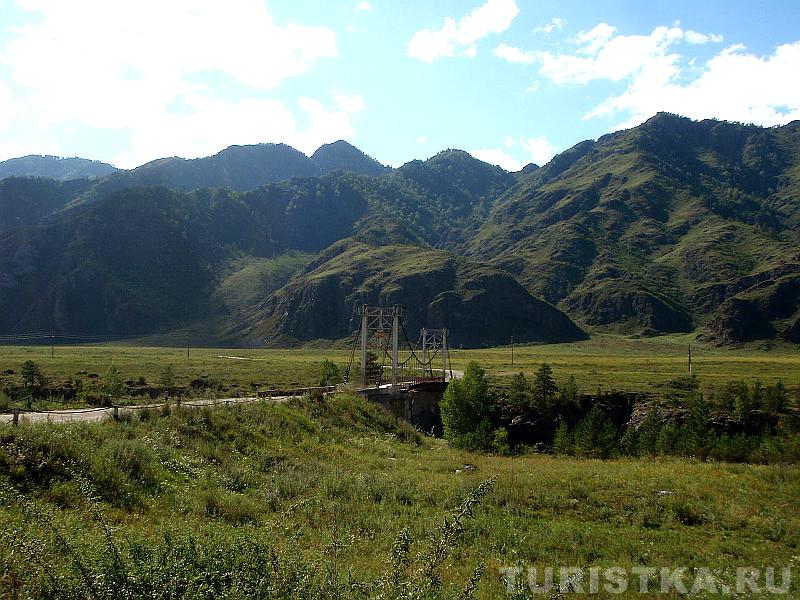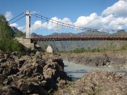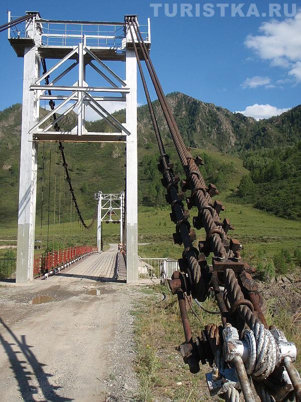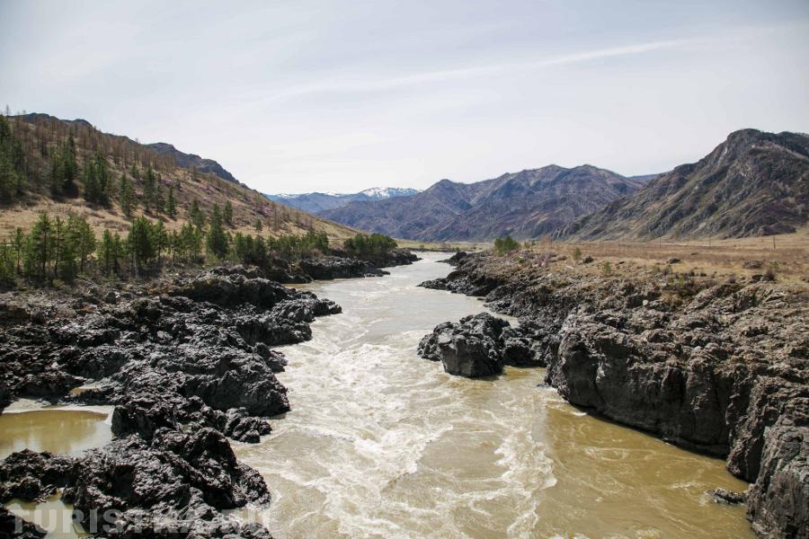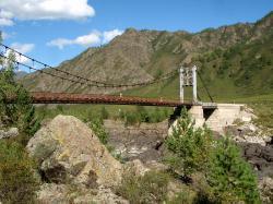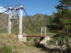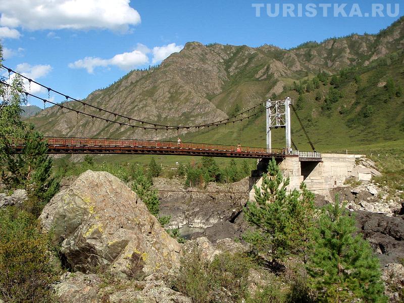 С моста отлично видны одни из самых красивых порогов Алтая Тельдекпеньские (так называемые Пни), по которым очень часто летом сплавляются водные туристы на рафтах, катамаранах и каяках в сторону Чемала.
