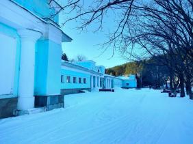 Белокурихи. Одноэтажное здание старой водолечебницы с массивными белыми колоннами было построено в 1936 году. Раньше в здании располагалась первая поликлиника курорта с 24 ваннами. До семидясятых годов прошлого века Старая водолечебница была основным лечебным учереждением на курорте.