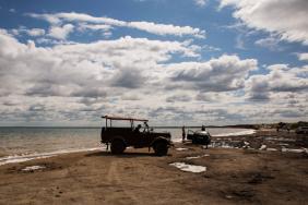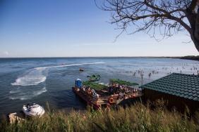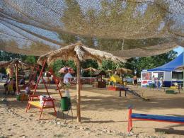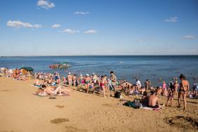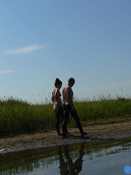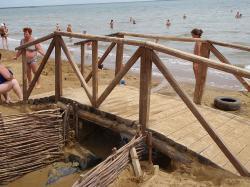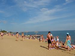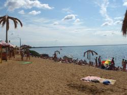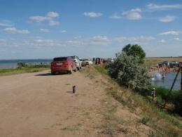 Но если не хочется шума, то можно отойти по берегу подальше вправо и там есть дикие спуски к озеру, то есть ступеньки, прорытые отдыхающими. На "диких" пляжах обмыться от соленой воды можно, прорыв на берегу в непосредственной близости от соленой воды ямку. Грунтовые воды залегают очень близко от поверхности. Отдыхающие отграничивают такие ямки с пресной водой автомобильными покрышками.