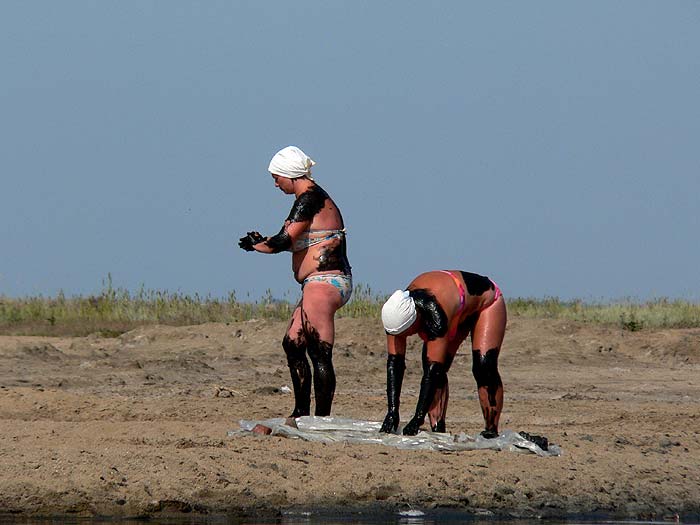 В воде озера живут маленькие рачки Артемия Салина (Artemia Salina). Рачки не продуцируют соль, как некоторые считают, просто среда их обитания соленые водоемы, в пресной воде они умирают. Вот в чем они участвуют, так это в образовании лечебной грязи. Отмирая, рачки оседают на дно озеро, перерабатываются грязевой микрофлорой и, в результате, формируется лечебная грязь. Грязь имеет черный цвет, при высыхании становится светло-серой. Часто на поверхности озера, особенно у берегов, можно увидеть бежевый налет. Его не недо бояться это яйца рачков Артемии Салина.