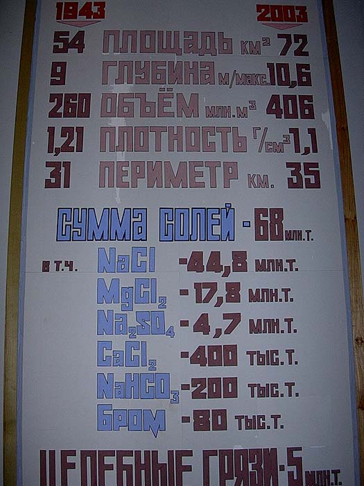 Самое главное достояние соленого озера его рапа. Рапа это не рачки, живущие в озере, как ошибочно считают многие отдыхающие, а сама вода, соляной раствор. И вот в этом растворе каких только нет солей. Наибольшее количество натрия хлорида (поваренной соли), потом идет хлорид магния, сульфат натрия, хлорид кальция и др. Входит в состав рапы еще и бром. Самое известное в мире соленое озеро Мертвое море. Степень минерализации рапы в Мертвом море 280 г/л.