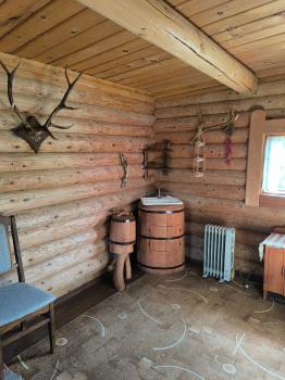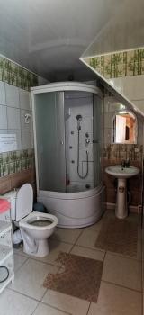 Душ и санузел рядом с избушкой, в соседнем здании. Стоимость - 2500 руб за избушку (доп. место 1000 руб.). В избушке: