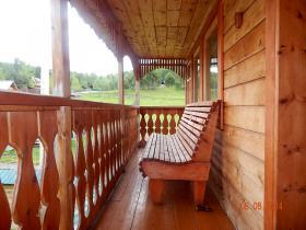 Кружевные деревянные украшения, витые столбики на крылечке, делают дом похожим на Теремок.