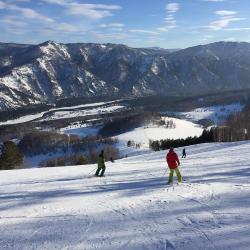 Горнолыжная база «Манжерок» с канатной дорогой расположена всего в нескольких километрах от Бирюзовой Катуни, так что за одну поездку можно побывать сразу на двух популярных алтайских курортах.
