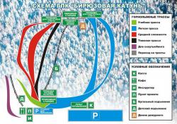 На территории ГЛК «Бирюзовая Катунь» расположены три горнолыжные трассы разного уровня сложности. Трассы комплекса подходят как для лыжников-профессионалов, так и для начинающих. Судя по отзывам спортсменов на специализированных форумах, правый склон считается самым интересным для горнолыжников со стажем (из-за перепада высот).