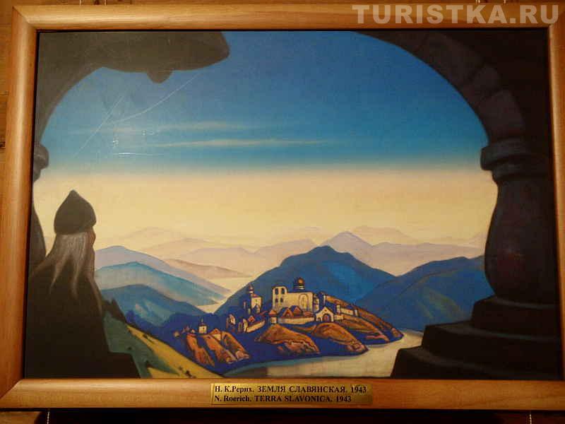 Кроме картин с изображением гор в музее представлены репродукции ранних картин Рериха, со словянской тематикой, на втором этаже можно познакомиться с картинами сына Н.К. Рериха - Святослава Николаевича.