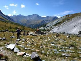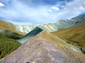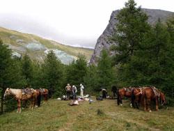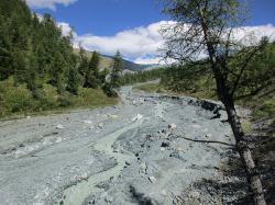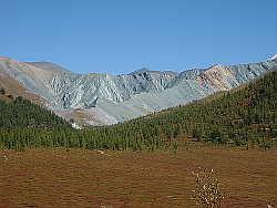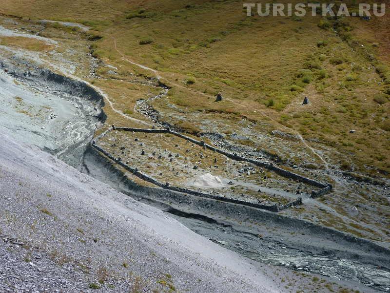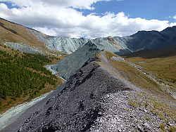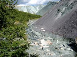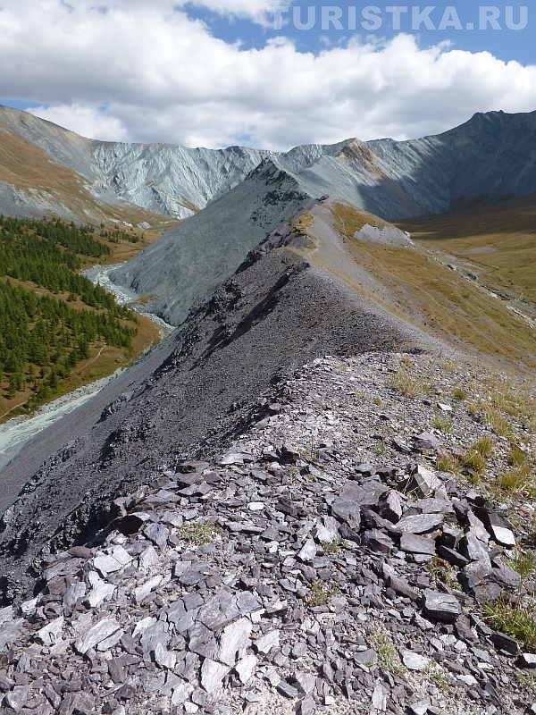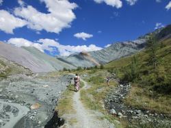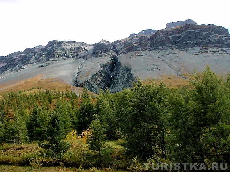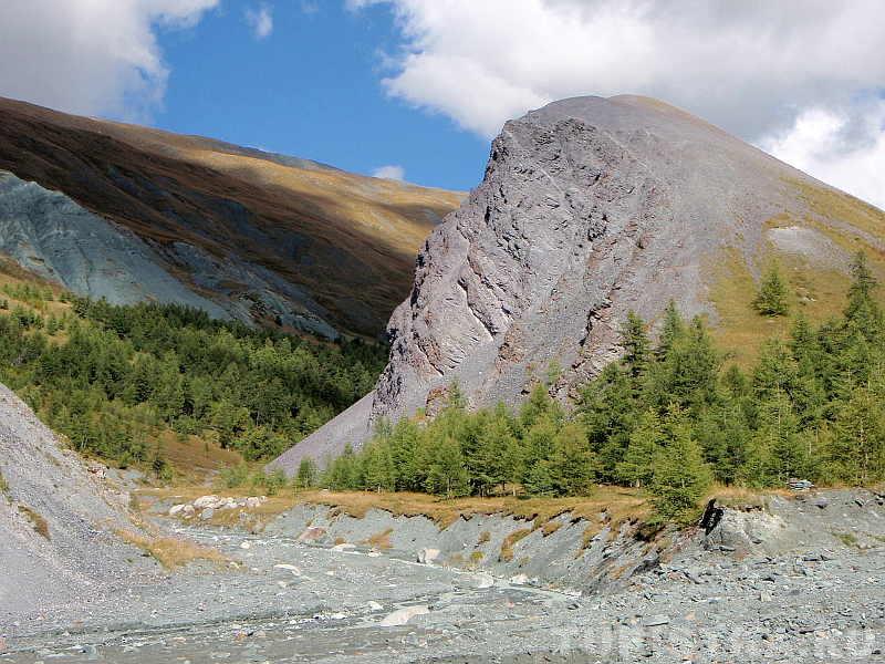 Если смотреть со стороны Аккема, то слева от разделительного гребня есть несколько уютных стоянок среди лиственниц. Справа от разделительного гребня деревьев нет, стоянок тоже нет, зато здесь текут ручьи из родников с прозрачной водой, чего нет в левой долине.