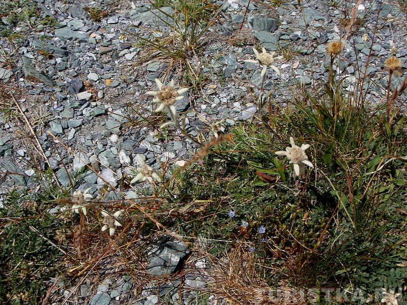 Ущелье Ярлу необычно еще и тем, что здесь много эдельвейсов, а в соседних долинах их нет. Почти повсюду в Ярлу растут эти скромные цветы, похожие на белые звездочки. Эдельвейсы занесены в Красную книгу.