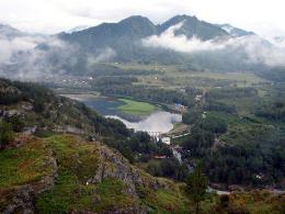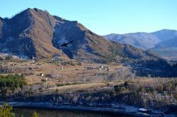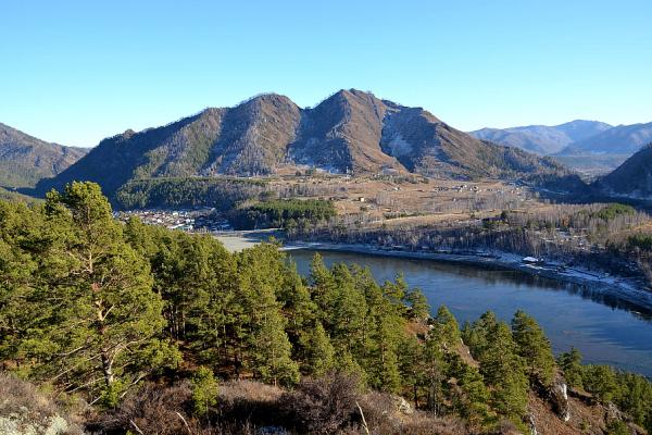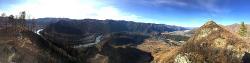 С горы Верблюд, особенно в ясную погоду, открываются впечатляющие виды на долину реки Катунь. Прямо напротив Верблюда, с западной стороны, Катунь делает два изгиба, каждый почти на 180 градусов. Два изгиба напоминают доллар.